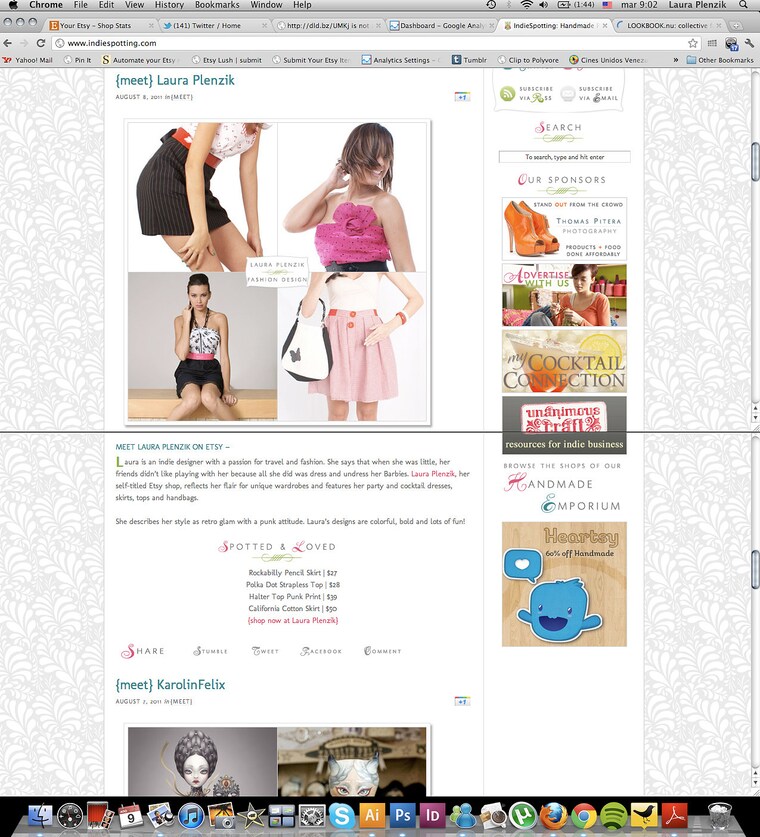 Being on etsy is fun and rewarding, I love the fact that my creations can travel the world and be used by someone who truly appreciates handmade. Thanks to this store I've been featured on different blogs, magazines and newsletters, which you can see above this text.