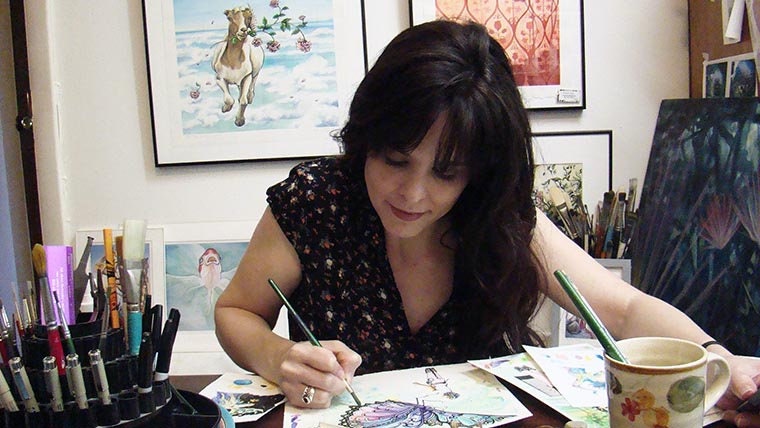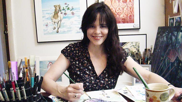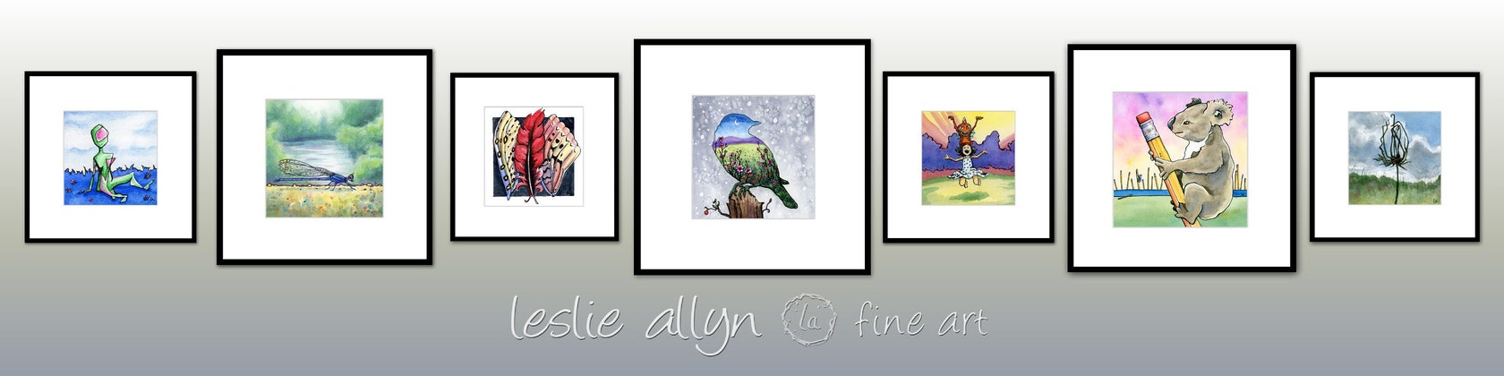 Hello! I am Leslie Allyn, a painter and illustrator in Chapel Hill, NC. My work is about finding magical moments in every day experiences, exploring dreams, humor and whimsy, with a natural feel. I have studied painting since childhood, and although my personal style is slightly unconventional for watercolor, it has grown from many years of practice, study and play.
