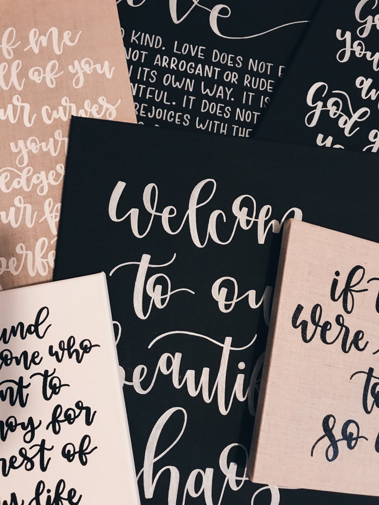 I'm the face behind Letters by Sarah Beth! I do almost everything that goes into your order: design it, make it, pack it up, ship it. All of the hand lettered goods in my shop are made by me!