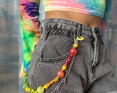 5 de 5 estrellasI could not be happier with the chain! it’s colorful and well made, i’m really excited to wear it with anything and everything! the metal clips are little yellow hearts, which is a sweet touch. the string has a tiny amount of stretch. the charms are cute too. i will be buying from this shop again and 100/10 recommend others do too. ih terms of shipping, it arrived quickly and neatly wrapped in tissue paper with an extra coordinating kandi bracelet. the mailer was holographic. thank you Lily!