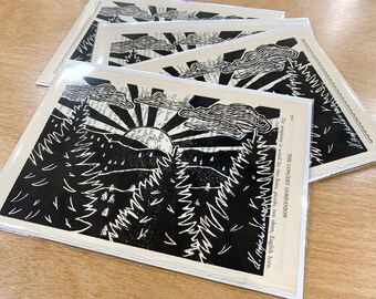 Great Smoky Mountains Block Linoleum Print on Vintage Book Page 5" x 7"