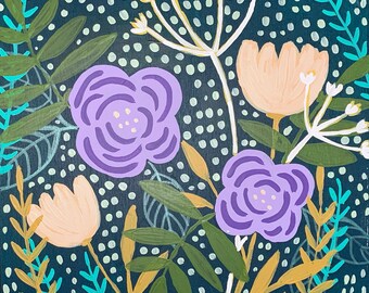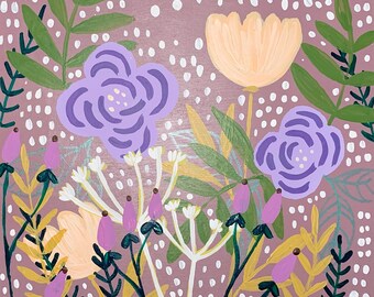 Original Painting - "2020 Floral No. 3" - Mixed Media on Cardboard - 8" x 10"