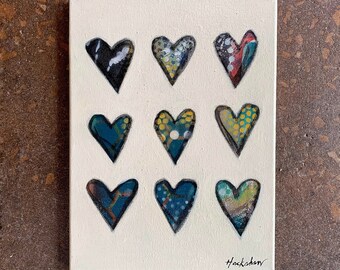 Nine Hearts No. 2 - Original Acrylic Painting on 9x12 Canvas