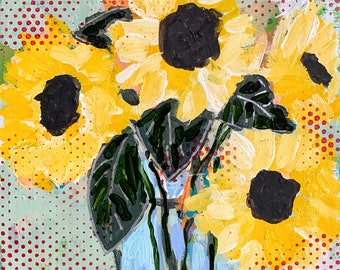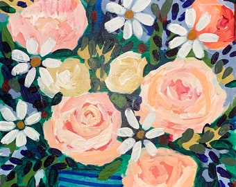 Original Painting - Roadtrip Flowers - Mixed Media on 11" x 14" Canvas