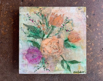 Original Painting - "2020 Floral No. 22" - Mixed Media on Canvas Panel - 8" x 10"