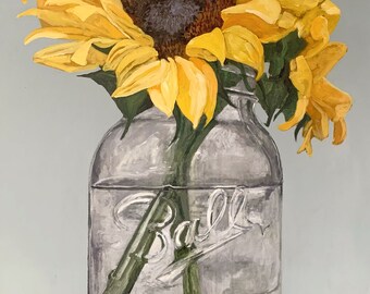 Original Painting - Sunflowers in Mason Jar - Acrylic on 30" x 30" Canvas