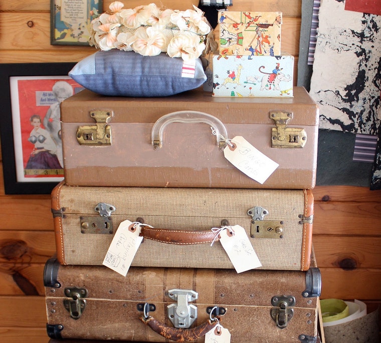 I love old suitcases for storage. A simple tag reminds me of what is inside. -