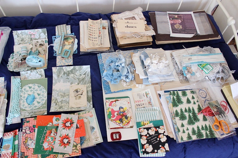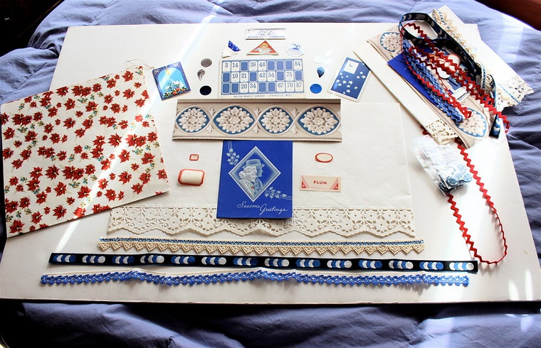 I started my shop in 2007 coordinating vintage postcards, seam binding, ribbons and millinery into little packets for other artists. My shop continues to grow with packs of all kinds of vintage papers like shelf paper, wallpaper, ledger and office papers, Dennison labels, greeting cards and wrapping paper along with all kinds of themed collage packs including holidays, French, birthday, circus, birds, garden, and sewing.