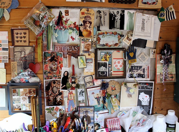 Despite the cluttered look, I love a rich inspiration board in front of me. -
