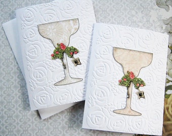 Champagne Glass Card, Rose Embossed Card, Blank Note Cards, Party Invites, Stationery, Handmade Card, Champagne Glass, Set of 8