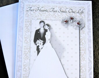 Two Hearts Two Souls Wedding Card, Congratulations, Bride and Groom Card, Wedding Celebration, Wedding Gift