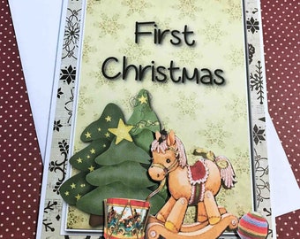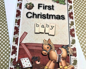 Baby's First Christmas Card, Merry Christmas, Holiday Cards, Seasonal, Traditional Card, Cards for kids, 3D card, First Christmas