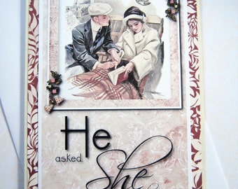Engagement Card, You're Engaged, Marriage proposal, He asked she said yes, Engagement gift, Wedding engagement, digital, vintage clip art