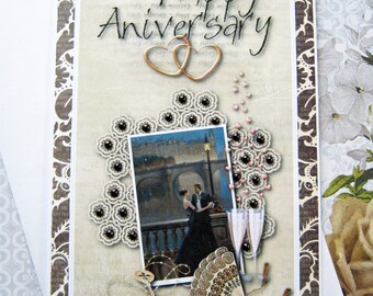 Elegant Anniversary Card, Wedding Anniversary, I love you, Husband and wife, 1st Anniversary, 10th Anniversary, champagne toast, pearls