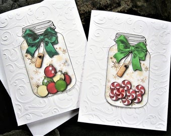 Holiday Note Card Set, Christmas Card, Christmas Thank You Card, Seasonal card, Mason Jar, embossed cards, winter theme, handmade, set of 10
