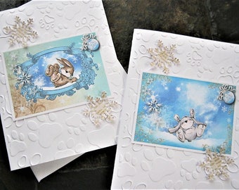 Snow Bunny Card Set, Winter Bunny Card, Embossed note cards, Holidays, Christmas, Seasonal Cards, Bunnies, Snowflakes, Set of 10 cards