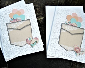 Pocket full of love note cards, Thank you note, Thinking of you, Blank cards with envelopes, Gifts for her, Set of 6 embossed cards