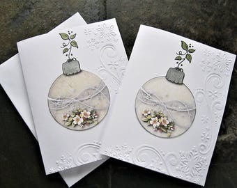 Holiday note cards, Note Card Set, Christmas, Seasonal Cards, Stationery set, Christmas Ornament Card, Embossed Cards, Blank Card, Set of 8