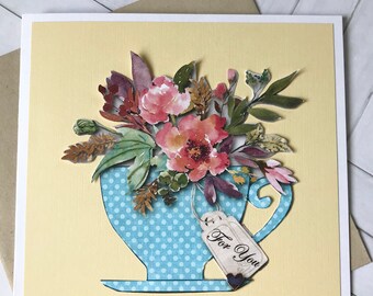 Floral Teacup Card, All Occasion Card, Thinking of you, Blank Card, Just a note, Watercolor flowers