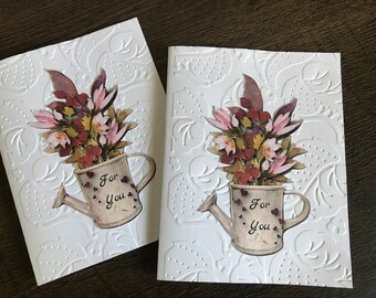 Watering Can Card, Blank Note Cards, For You, Embossed Stationery Set, Garden Card, Flowers, Gifts for her, All Occasion Card, Set of 6