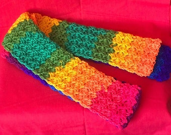 Crocheted Bright Color Block Scarf