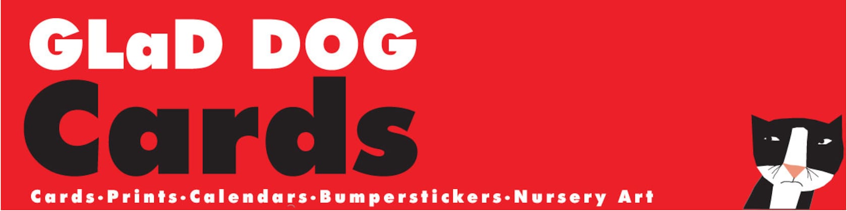 Glad Dog cards, prints, bumper stickers, nursery art, woodland art, kids room decor, dog art, cat art, calendars; all handprinted by me. visit bestbrownie.etsy.com for my delectable gourmet baking mixes