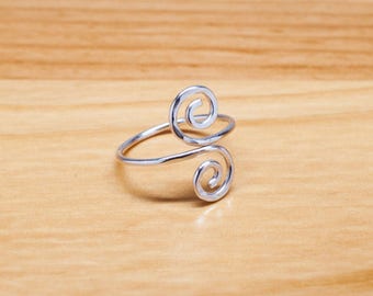 Sterling Silver Toe Ring - Summer Outdoors, hammered swirl toe ring swirly curly pure silver toe ring, handmade wire jewelry