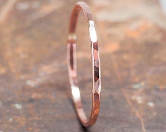 Solid Rose Gold Stacking Ring - Single 14k Pink Gold hammered stacker ring band - thin dainty real gold ring - hammered faceted finish 1mm
