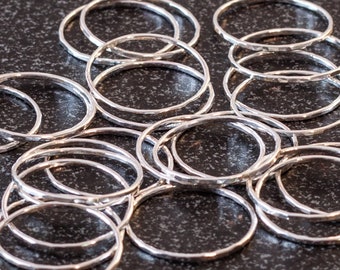 Sterling Silver Stacking Ring - 925 Silver stack ring, hammered silver bands, thin dainty petite skinny rings- stackable bands