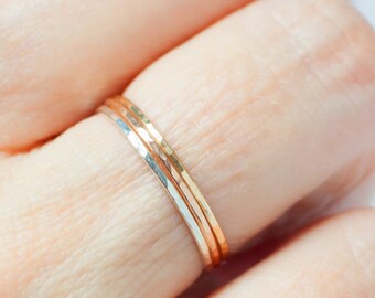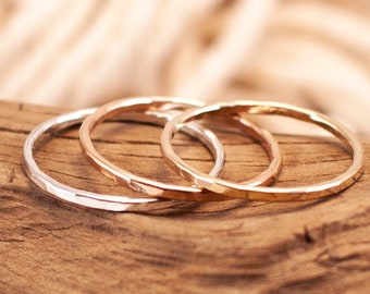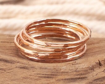 Rose Gold Stacking Rings - Thin Skinny Rose Gold Rings - Hammered 14k Rose Gold Filled - Dainty Thin Stacking Rings - Minimal Gold Ring