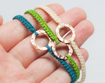 Braided Bracelet with Accent Copper Ring- Adjustable custom bracelet with copper accent, gift idea linhasita, handmade waxed cord bracelet