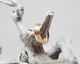 Gold Ring Set - Hammered Gold Rings with Twist Rings - 14k Gold Filled Stacking Rings Set - Trendy Mixed Texture Stack RIngs - Holiday Gift