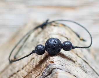 Lava Bead Bracelet - Diffuser Bracelet with Triple lava beads, waxed cord beaded bracelet, natural outdoors friendship bracelet gift for her