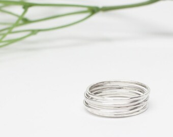 Silver Stacking Rings - Handmade 1.2mm wide Sterling Silver Rings - Ring Set 925 Silver with faceted finish