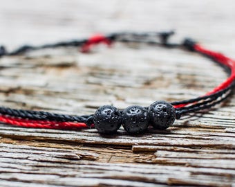 Black and Red Lava Bead Bracelet - waxed cord beaded essential oil diffuser bracelet, linhasita thread friendship bracelet gift inspiration