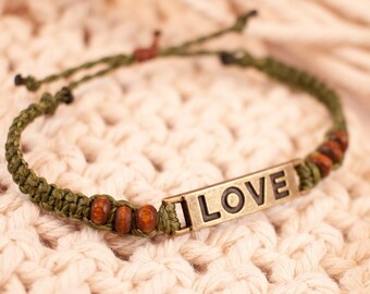 LOVE Bracelet - Hand made braided bracelet - macrame beaded bracelet - adjustable charm bracelet with love - gift idea friendship bracelet