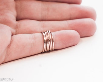 Rose Gold Stacking Rings - Set of 5 Thin Skinny Rose Gold Rings - Hammered 14k Rose Gold Filled - Dainty Thin Stacking Rings Textured gift