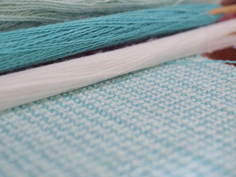 A scarf on the loom. -
