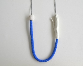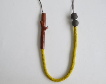 Ceramic twig necklace, long crochet necklace, contemporary necklace, art jewelry, branch necklace