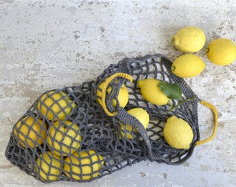 Grey net bag, market tote bag, eco friendly bag, crochet summer handbag, mesh bag, market hobo bag, crochet grocery bag, minimal bag
