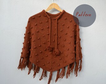 Knit poncho pattern for kids, kids poncho pattern, girls poncho, popcorn poncho pattern, knit poncho tutorial, kids clothing pattern