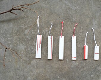 Ceramic christmas ornament, christmas tree ornament, ceramic hanging, white and red ornament, minimalistic home decor