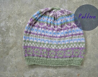 Fair isle hat pattern - knitting beanie pattern - knitted hat pattern - stranded colourwork pattern - knitted hat in pastels tutorial