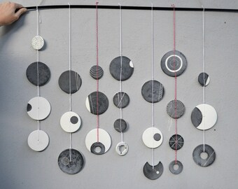 Ceramic wall hanging, minimalist ceramic wall art in black and white, minimal ceramic circles, wall ornament decor, ceramic wall decor