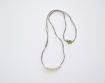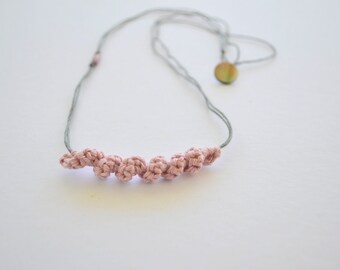 Pink elegant necklace, long necklace, minimalist simple jewelry, boho jewelry, eco friendly, crochet pendant necklace, linen jewelry