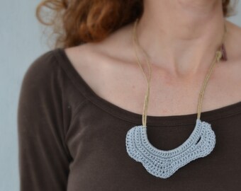 Eco friendly tribal statement necklace- grey crochet necklace- assymetric necklace, organic form jewelry