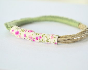 Floral bracelet textile jewelry green crochet bangle natural summer bracelet pantone greenery romantic bracelet