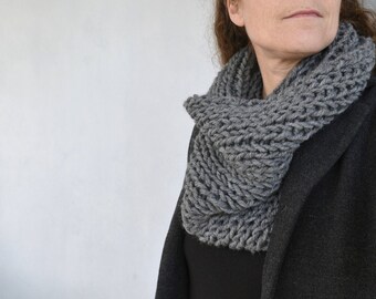 Grey chunky knit scarf - knitted neckwarmer - fashion scarf - hand knit cowl - unisex scarves - winter accessories