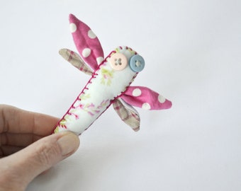 Dragonfly brooch, floral brooch, insect brooch, romantic textile jewelry, fiber art jewelry