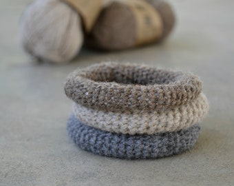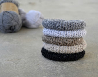 Crochet bangle bracelet, woolen crochet bracelet in natural colours, crochet cuff bracelet, crochet jewelry, textile bracelet